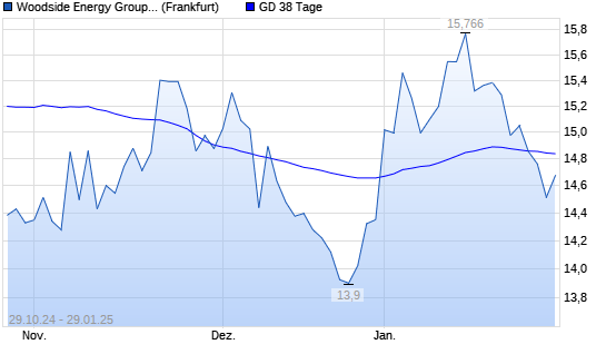 Mit dem Rücksetzer auf 14,52 EUR hat die Woodside Petroleum-Aktie am 28.01.2025 die 38-Tage-Linie nach unten gekreuzt.