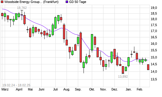Mit dem Rücksetzer auf 14,46 EUR hat die Woodside Petroleum-Aktie am 17.02.2025 die 50-Tage-Linie nach unten gekreuzt.