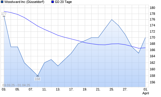 Mit dem Anstieg auf 169,00 EUR hat die Woodward-Aktie am 31.03.2025 die 20-Tage-Linie nach oben gekreuzt.