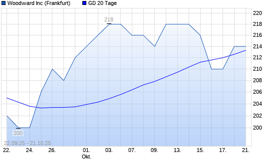 Mit dem Anstieg auf 214,00 EUR hat die Woodward-Aktie am 20.10.2025 die 20-Tage-Linie nach oben gekreuzt.