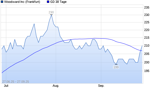 Mit dem Anstieg auf 210,00 EUR hat die Woodward-Aktie am 26.09.2025 die 38-Tage-Linie nach oben gekreuzt.