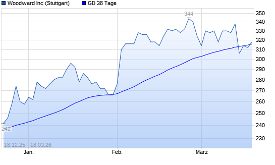Mit dem Anstieg auf 316,00 EUR hat die Woodward-Aktie am 17.03.2026 die 38-Tage-Linie nach oben gekreuzt.