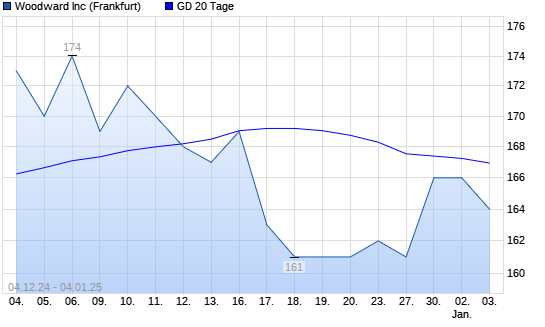 Mit dem Rücksetzer auf 164,00 EUR hat die Woodward-Aktie am 03.01.2025 die 20-Tage-Linie nach unten gekreuzt.