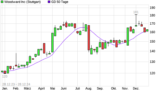 Mit dem Rücksetzer auf 161,00 EUR hat die Woodward-Aktie am 27.12.2024 die 50-Tage-Linie nach unten gekreuzt.