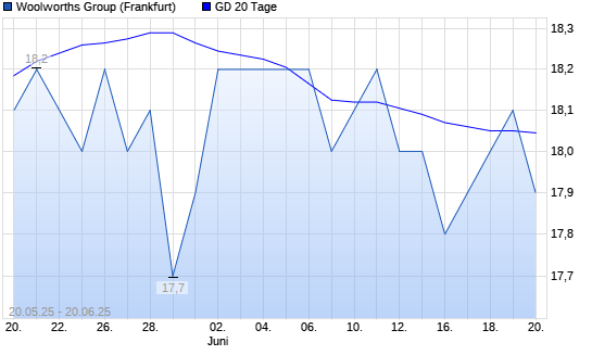 Mit dem Anstieg auf 18,10 EUR hat die Woolworths Group-Aktie am 19.06.2025 die 20-Tage-Linie nach oben gekreuzt.