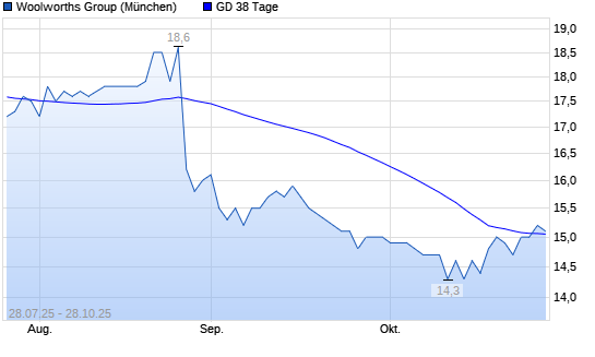 Mit dem Anstieg auf 15,20 EUR hat die Woolworths Group-Aktie am 27.10.2025 die 38-Tage-Linie nach oben gekreuzt.