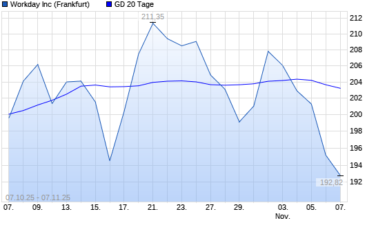 Mit dem Rücksetzer auf 203,70 EUR hat die Workday-Aktie am 06.11.2025 die 20-Tage-Linie nach unten gekreuzt.