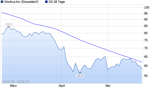 Mit dem Rücksetzer auf 61,00 EUR hat die Workiva-Aktie am 22.05.2025 die 38-Tage-Linie nach unten gekreuzt.