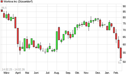 Mit dem Rücksetzer auf 52,00 EUR hat die Workiva-Aktie (ISIN US98139A1051) am 13.02.2026 ein neues 5-Jahres-Tief erreicht und damit den Kurs vom 12.02.2026 eingestellt.Die Workiva-Aktie ...weiterlesen