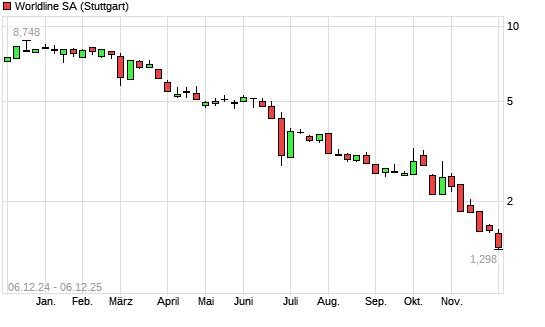 Mit dem Rücksetzer auf 1,36 EUR hat die Worldline-Aktie (ISIN FR0011981968) am 05.12.2025 ein neues All-Time-Low erreicht und damit den Kurs vom 04.12.2025 eingestellt.