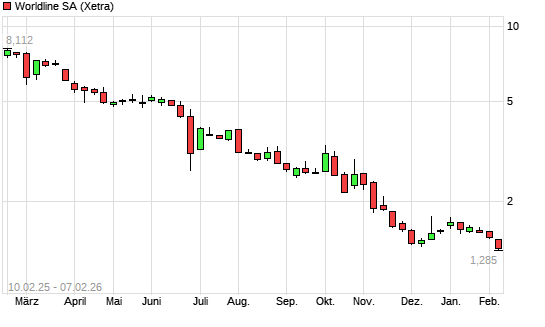 Mit dem Rücksetzer auf 1,29 EUR hat die Worldline-Aktie (ISIN FR0011981968) am 06.02.2026 ein neues All-Time-Low erreicht und damit den Kurs vom 05.02.2026 eingestellt.