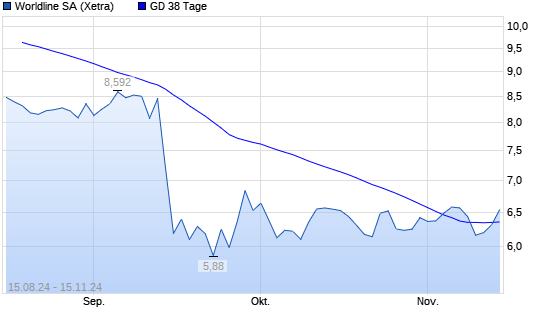 Mit dem Anstieg auf 6,32 EUR hat die Worldline-Aktie am 14.11.2024 die 38-Tage-Linie nach oben gekreuzt.