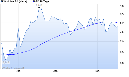 Mit dem Anstieg auf 8,00 EUR hat die Worldline-Aktie am 19.02.2025 die 38-Tage-Linie nach oben gekreuzt.