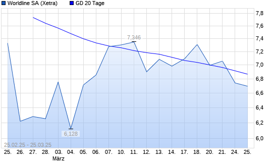 Mit dem Rücksetzer auf 6,62 EUR hat die Worldline-Aktie am 24.03.2025 die 20-Tage-Linie nach unten gekreuzt.