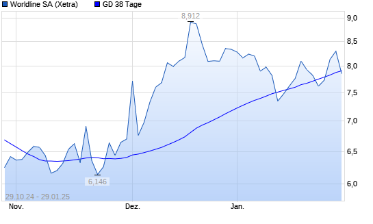 Mit dem Rücksetzer auf 8,00 EUR hat die Worldline-Aktie am 28.01.2025 die 38-Tage-Linie nach unten gekreuzt.