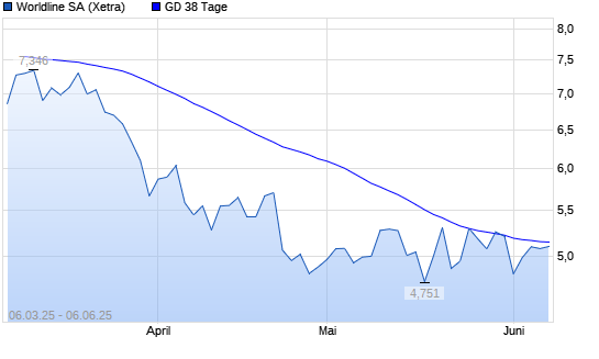 Mit dem Rücksetzer auf 5,11 EUR hat die Worldline-Aktie am 05.06.2025 die 38-Tage-Linie nach unten gekreuzt.