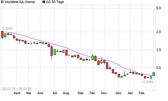 Mit dem Rücksetzer auf 1,47 EUR hat die Worldline-Aktie am 25.02.2026 die 50-Tage-Linie nach unten gekreuzt.