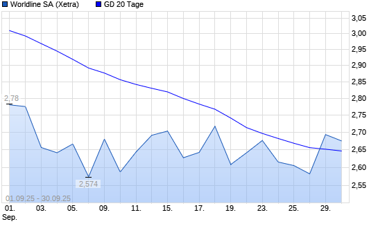 Mit dem Anstieg auf 2,69 EUR hat die Worldline-Aktie am 29.09.2025 die 20-Tage-Linie nach oben gekreuzt.Die Worldline-Aktie befindet sich seit dem 21.02.2023 im langfristigen Abwärtstrend und ...weiterlesen