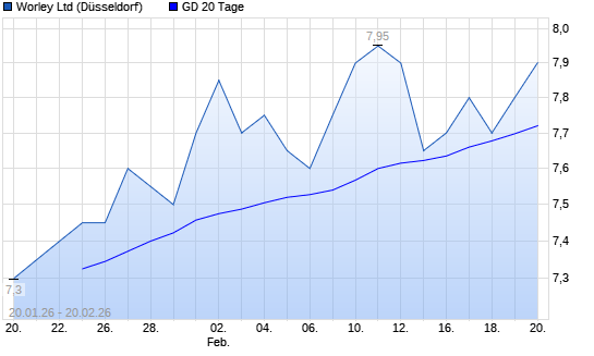 Mit dem Anstieg auf 7,75 EUR hat die Worley-Aktie am 19.02.2026 die 20-Tage-Linie nach oben gekreuzt.Die Worley-Aktie befindet sich seit dem 23.01.2026 im langfristigen Aufwärtstrend ...weiterlesen