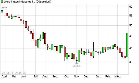 Mit dem Anstieg auf 47,90 EUR hat die Worthington Industries-Aktie (ISIN US9818111026) am 27.03.2025 ein neues 6-Monats-Hoch erreicht und damit den Kurs vom 26.03.2025 eingestellt.