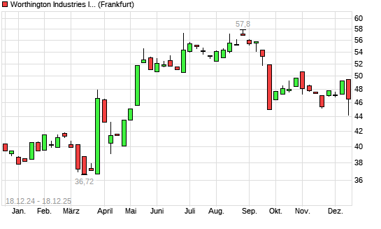 Mit dem Rücksetzer auf 44,80 EUR hat die Worthington Industries-Aktie (ISIN US9818111026) am 17.12.2025 ein neues 6-Monats-Tief erreicht und damit den Kurs vom 26.09.2025 eingestellt.