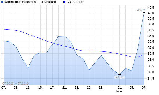Mit dem Anstieg auf 36,90 EUR hat die Worthington Industries-Aktie am 06.11.2024 die 20-Tage-Linie nach oben gekreuzt.