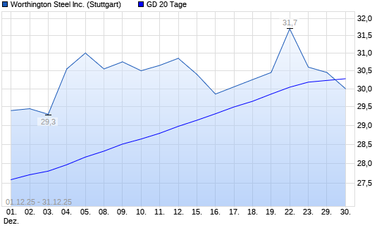 Mit dem Anstieg auf 29,95 EUR hat die Worthington Steel [Ordinary Shares]-Aktie am 30.12.2025 die 20-Tage-Linie nach oben gekreuzt.