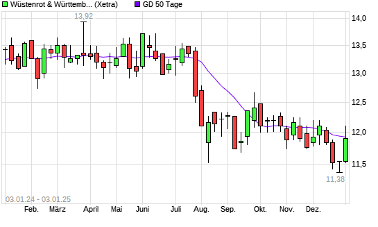 Mit dem Anstieg auf 11,94 EUR hat die Wüstenrot & Württembergische-Aktie am 02.01.2025 die 50-Tage-Linie nach oben gekreuzt.