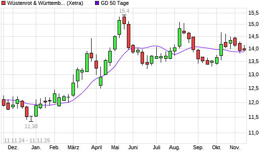 Mit dem Anstieg auf 13,92 EUR hat die Wüstenrot & Württembergische-Aktie am 10.11.2025 die 50-Tage-Linie nach oben gekreuzt.