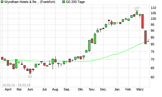 Mit dem Anstieg auf 83,50 EUR hat die Wyndham Hotels & Resorts-Aktie am 18.03.2025 die 200-Tage-Linie nach oben gekreuzt.