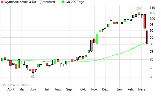 Mit dem Rücksetzer auf 80,50 EUR hat die Wyndham Hotels & Resorts-Aktie am 14.03.2025 die 200-Tage-Linie nach unten gekreuzt.