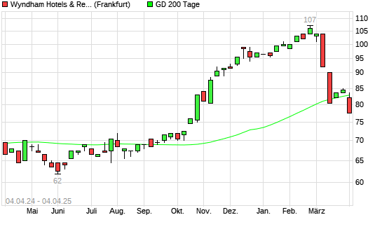 Mit dem Rücksetzer auf 82,50 EUR hat die Wyndham Hotels & Resorts-Aktie am 03.04.2025 die 200-Tage-Linie nach unten gekreuzt.