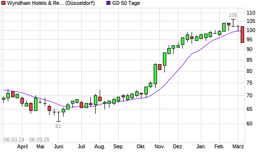 Mit dem Rücksetzer auf 98,50 EUR hat die Wyndham Hotels & Resorts-Aktie am 05.03.2025 die 50-Tage-Linie nach unten gekreuzt.