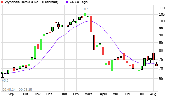 Mit dem Rücksetzer auf 71,50 EUR hat die Wyndham Hotels & Resorts-Aktie am 08.08.2025 die 50-Tage-Linie nach unten gekreuzt.