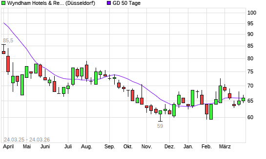 Mit dem Rücksetzer auf 65,00 EUR hat die Wyndham Hotels & Resorts-Aktie am 23.03.2026 die 50-Tage-Linie nach unten gekreuzt.