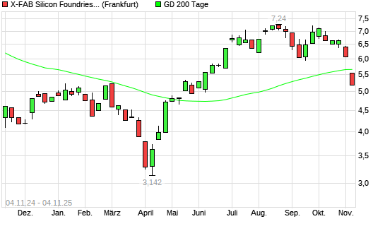 Mit dem Rücksetzer auf 5,53 EUR hat die X-FAB Silicon Foundries-Aktie am 03.11.2025 die 200-Tage-Linie nach unten gekreuzt.