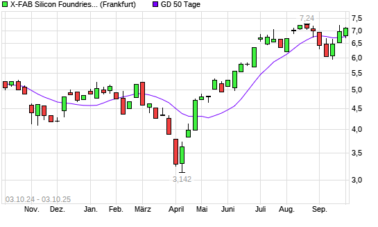 Mit dem Rücksetzer auf 6,73 EUR hat die X-FAB Silicon Foundries-Aktie am 02.10.2025 die 50-Tage-Linie nach unten gekreuzt.