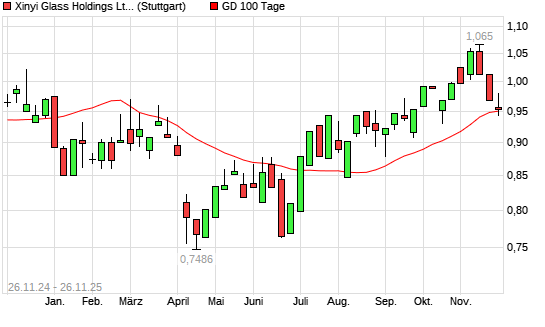 Mit dem Rücksetzer auf 0,94 EUR hat die XINYI GLASS HOLDING-Aktie am 25.11.2025 die 100-Tage-Linie nach unten gekreuzt.