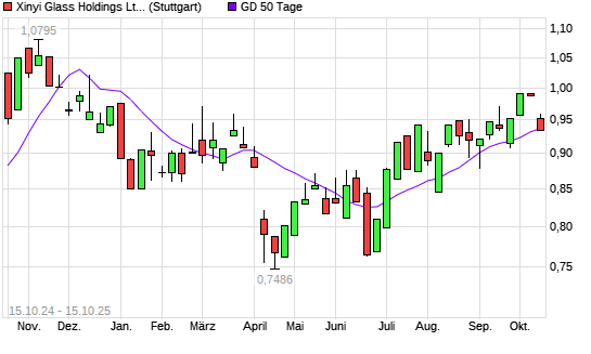 Mit dem Rücksetzer auf 0,93 EUR hat die XINYI GLASS HOLDING-Aktie am 14.10.2025 die 50-Tage-Linie nach unten gekreuzt.
