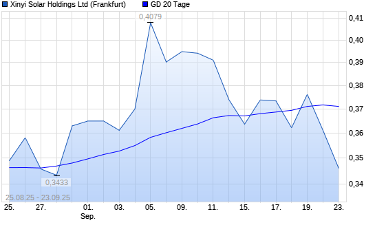 Mit dem Rücksetzer auf 0,36 EUR hat die XINYI SOLAR Holding-Aktie am 22.09.2025 die 20-Tage-Linie nach unten gekreuzt.
