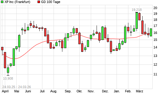 Die XP-Aktie befindet sich seit dem 20.01.2026 im langfristigen Aufwärtstrend und hat in diesem Zeitraum +9,29% an Wert gewonnen. Der Abstand zur 200-Tage-Linie beträgt aktuell +7,15%.