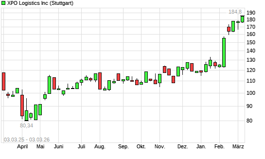 Mit dem Anstieg auf 176,10 EUR hat die XPO Logistics-Aktie (ISIN US9837931008) am 02.03.2026 ein neues All-Time-High erreicht und damit den Kurs vom 23.02.2026 eingestellt.