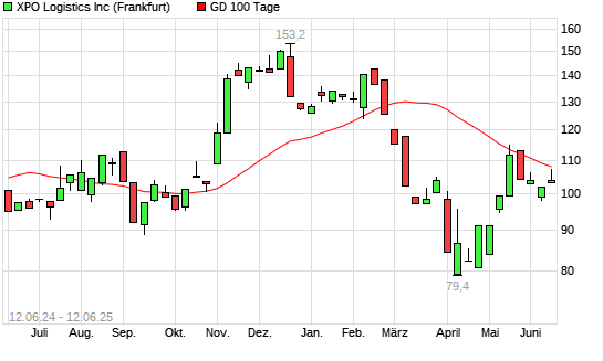 Mit dem Anstieg auf 107,25 EUR hat die XPO Logistics-Aktie am 11.06.2025 die 100-Tage-Linie nach oben gekreuzt.