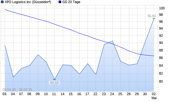 Mit dem Anstieg auf 91,14 EUR hat die XPO Logistics-Aktie am 02.05.2025 die 20-Tage-Linie nach oben gekreuzt.