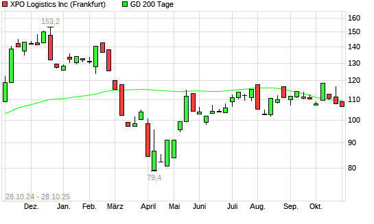 Mit dem Anstieg auf 109,05 EUR hat die XPO Logistics-Aktie am 27.10.2025 die 200-Tage-Linie nach oben gekreuzt.