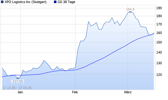 Mit dem Anstieg auf 158,60 EUR hat die XPO Logistics-Aktie am 16.03.2026 die 38-Tage-Linie nach oben gekreuzt.