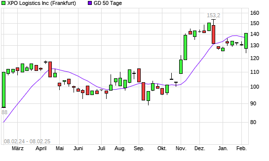 Mit dem Anstieg auf 140,70 EUR hat die XPO Logistics-Aktie am 07.02.2025 die 50-Tage-Linie nach oben gekreuzt.