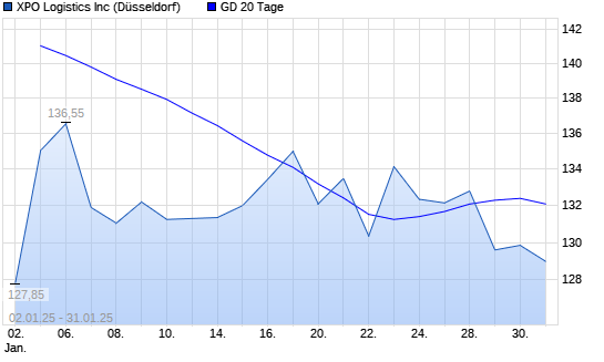 Mit dem Rücksetzer auf 129,95 EUR hat die XPO Logistics-Aktie am 30.01.2025 die 20-Tage-Linie nach unten gekreuzt.