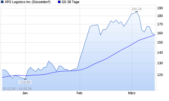 Mit dem Rücksetzer auf 156,90 EUR hat die XPO Logistics-Aktie am 13.03.2026 die 38-Tage-Linie nach unten gekreuzt.