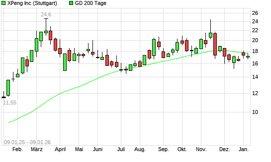 Mit dem Anstieg auf 17,75 EUR hat die XPeng-Aktie am 08.01.2026 die 200-Tage-Linie nach oben gekreuzt.